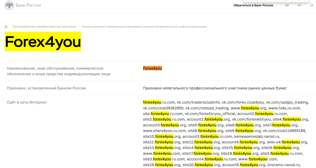 Правда, которую скрывает Forex4You официальный сайт: отсутствие регулирования и черный список ЦБ РФ