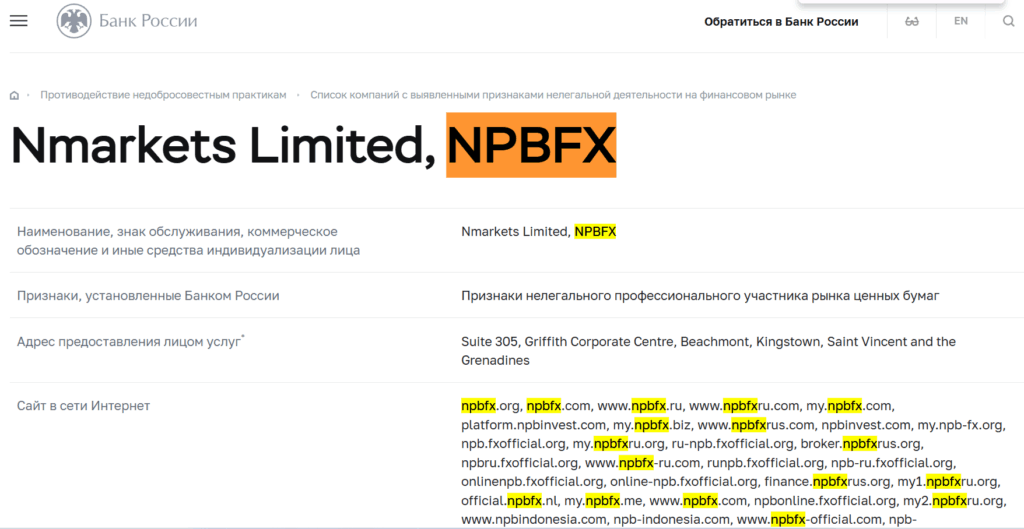 Центральный Банк России не молчал! Он открыто предупреждал всех: «Держитесь подальше от NPBFX!» Компания была внесена в черный список нелегальных организаций. Никаких лицензий, никаких гарантий — один сплошной обман NPBFX